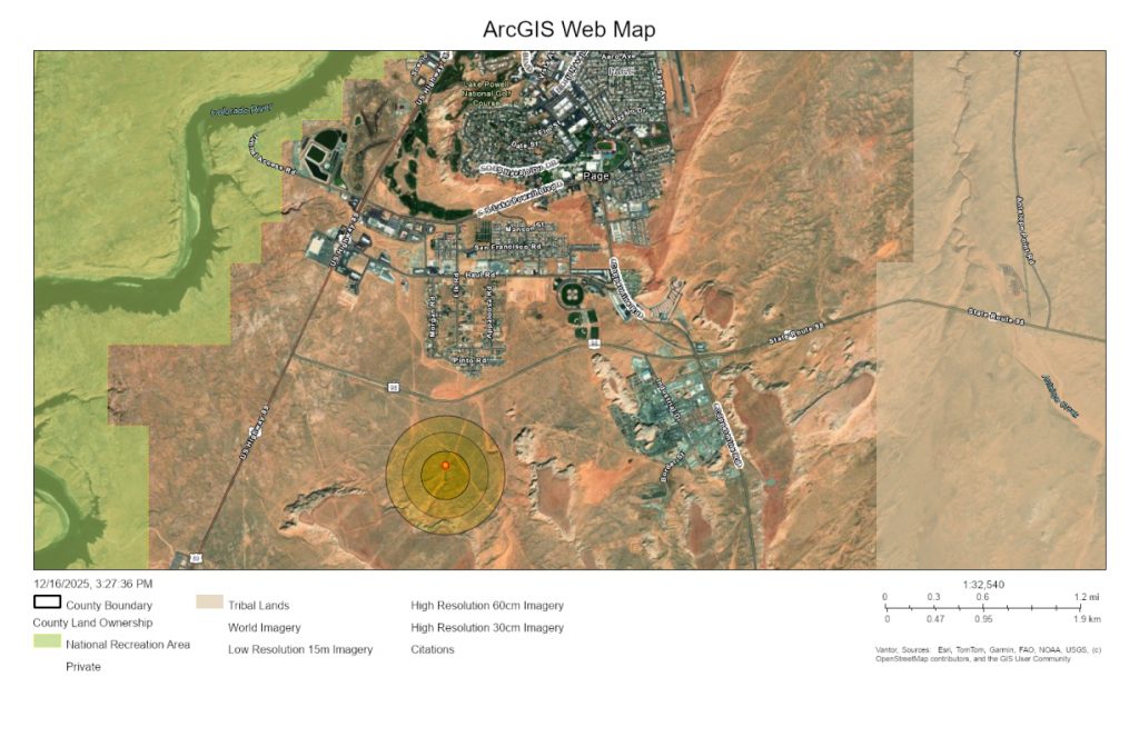 The potential site is not located at or adjacent to Horseshoe Bend. Under the land sale agreement, the developer will be evaluating potential locations during the feasibility period, and a future site could be located anywhere within the approximately 500 acres of City-owned land defined in the land sale agreement, on the south-west side of Page near Highway 98.